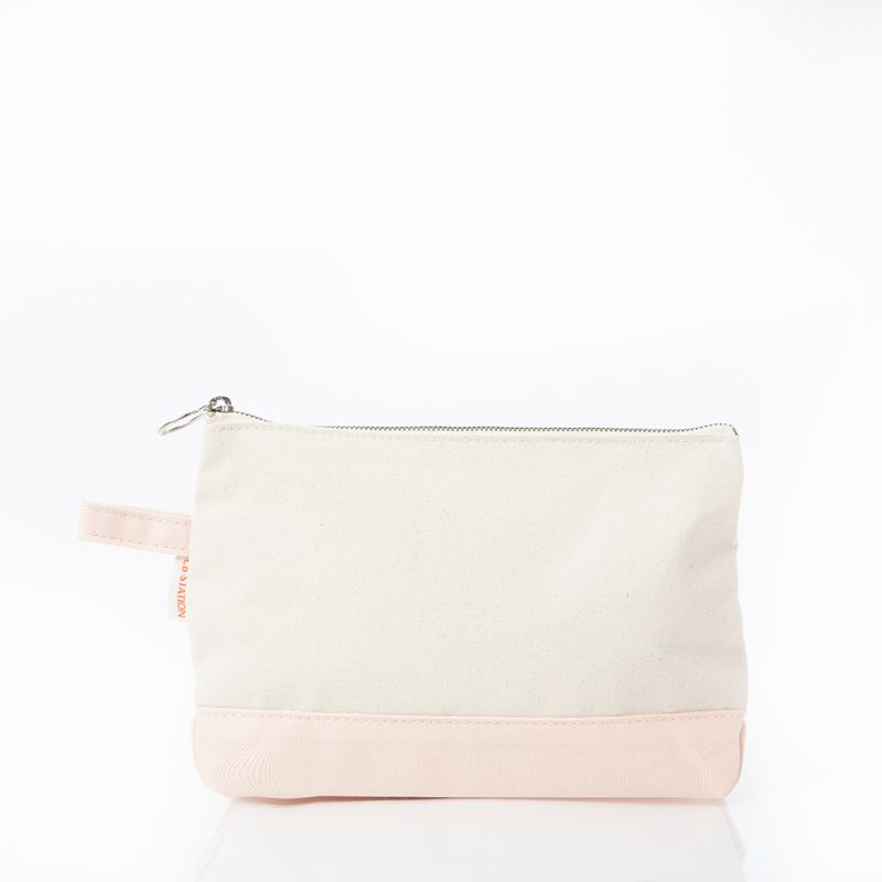 Easily our favorite and most versatile small accessory, the Makeup Bag comes second to none with It's classic two-tone canvas body paired with solid dyed navy trim. Store your cosmetics, toiletries or other small accessories in personalized style by adding a monogram to this trendy pouch.