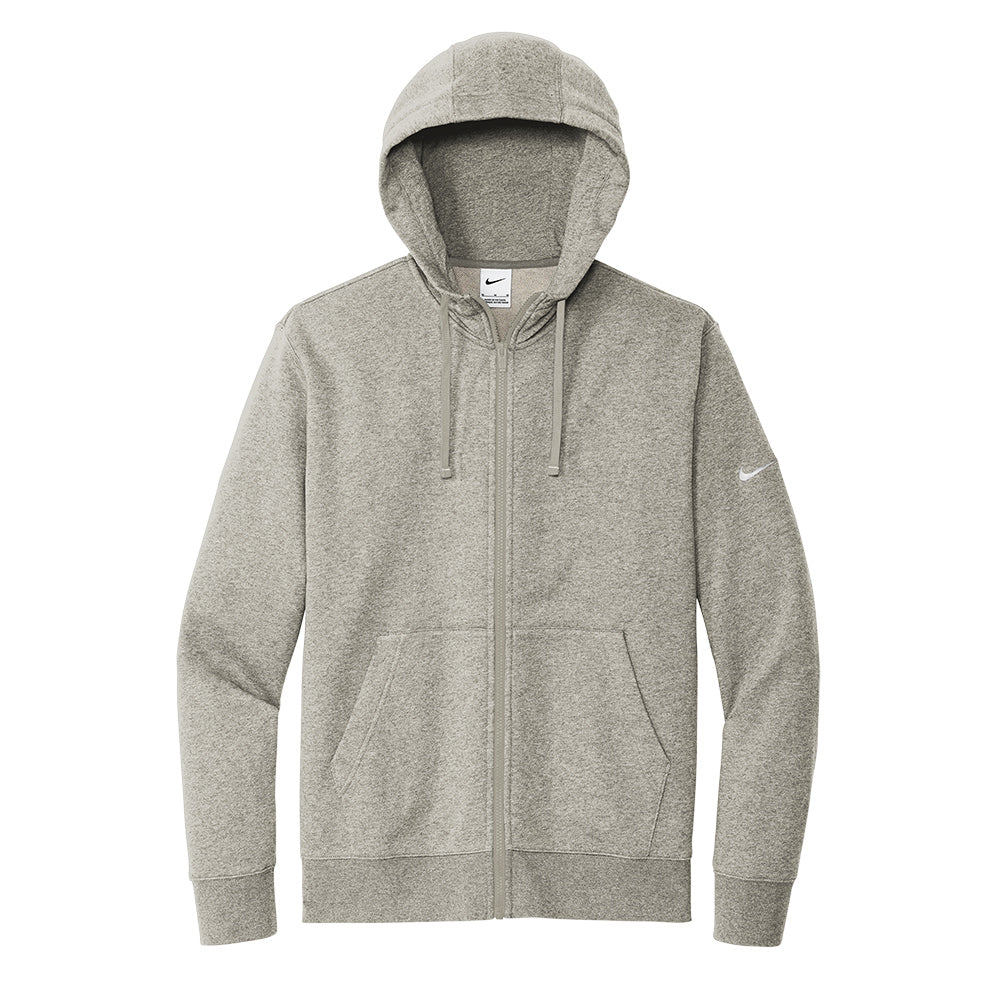 This brushed-back fleece hoodie is where comfort meets street-ready Nike style. Jersey-lined, three-panel hood with dyed-to-match drawcords and front pockets. Rib knit cuffs and hem. A contrast Swoosh logo is embroidered on left sleeve. Made of 8.2-ounce, 72/20/8 cotton/polyester/organic cotton.