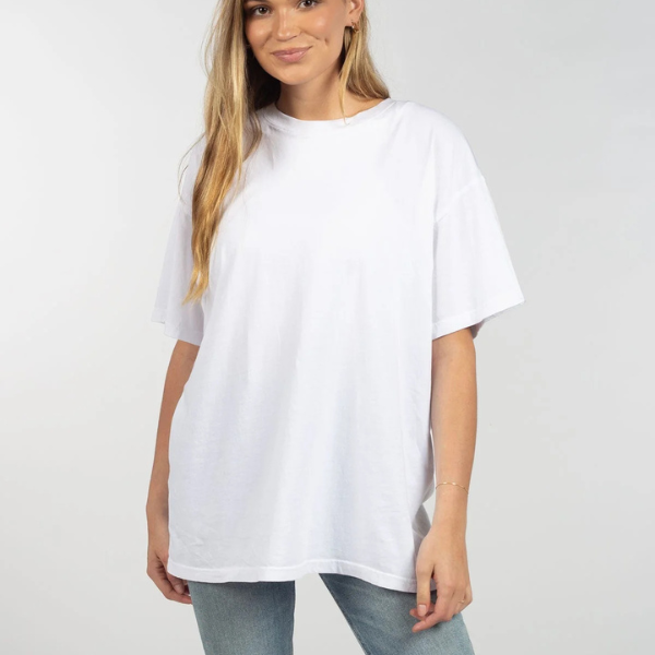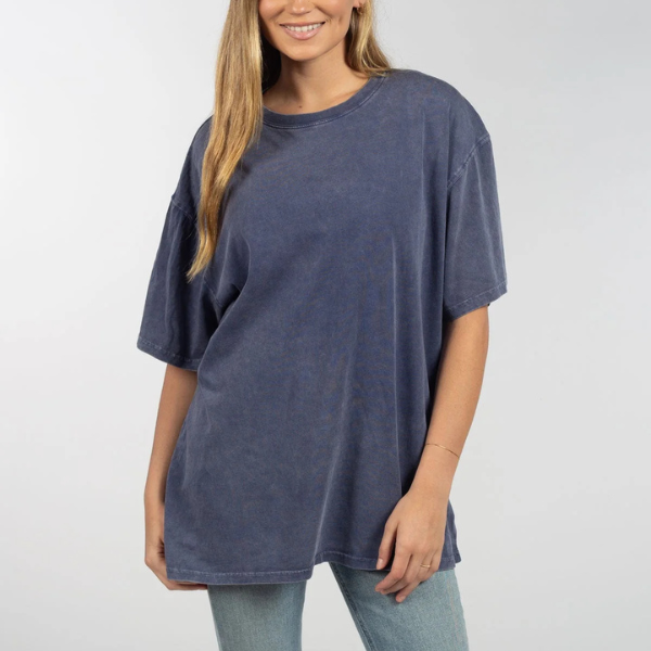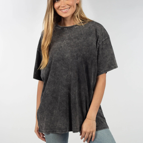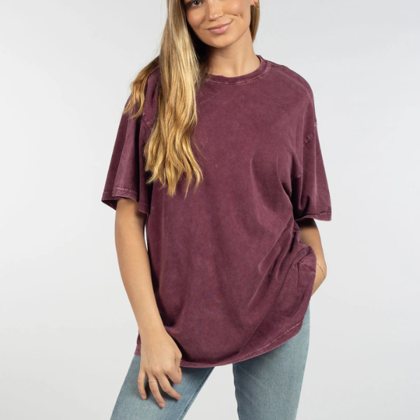 Feel like a rockstar in our comfortable and on-trend band tee. Our super soft oversized t-shirt is perfect for that elevated, lived-in feel. Made with 100% cotton and a vintage inspired mineral wash, you will never want to take it off!